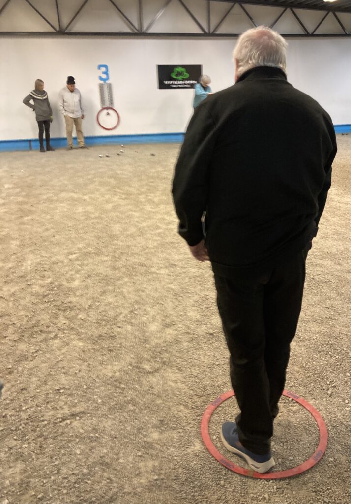 Vi håller till på våra boulebanor inne i Blå hallen som håller lagom temperatur.